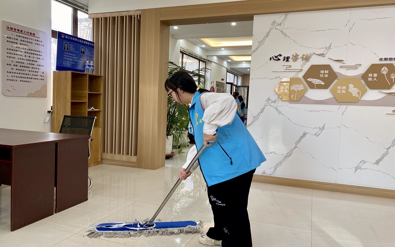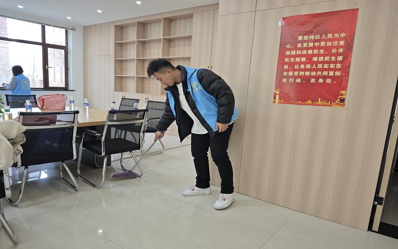 活动当天,青马班志愿者们身着统一蓝色马甲,手持垃圾夹、抹布等清洁工具,分组对社区环境进行了全面清理。他们认真细致地清理了绿化带内的纸屑、烟头等杂物,擦净了党群活动室的玻璃窗与地面,擦拭了楼梯扶手,使社区环境焕然一新。志愿者们用实际行动践行了“奉献、友爱、互助、进步”的志愿精神,赢得了社区居民的高度赞扬。