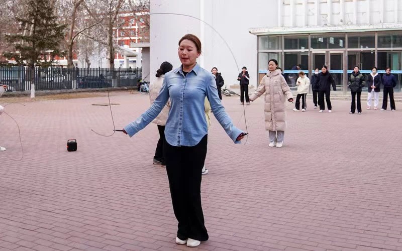 2025年3月27日中午,文学与新闻传播学院在霍林河校区体育馆前举办“绳采飞扬,跃动青春”跳绳比赛,活动吸引来自不同专业年级共40余名同学参赛。