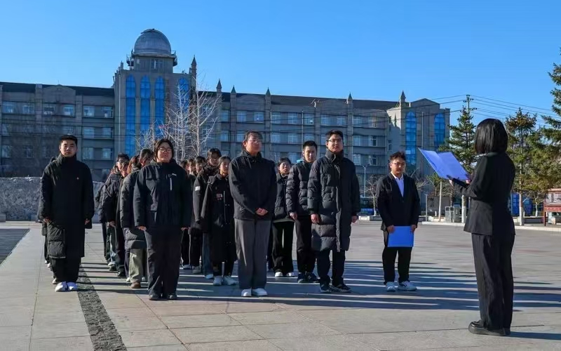 “1947年解放战争期间,徐永清为掩护主力部队转移,率领一个排的战士与数倍于己的敌军展开殊死战斗,最终壮烈牺牲,年仅35岁……”院学生会主席团成员厍超冉的深情讲述,将现场师生带回那段烽火岁月。当讲到烈士以血肉之躯筑起防线的事迹时,许多同学表示:“烈士用生命诠释了信仰的力量,这堂生动的思政课让我深刻理解了什么是真正的英雄。”