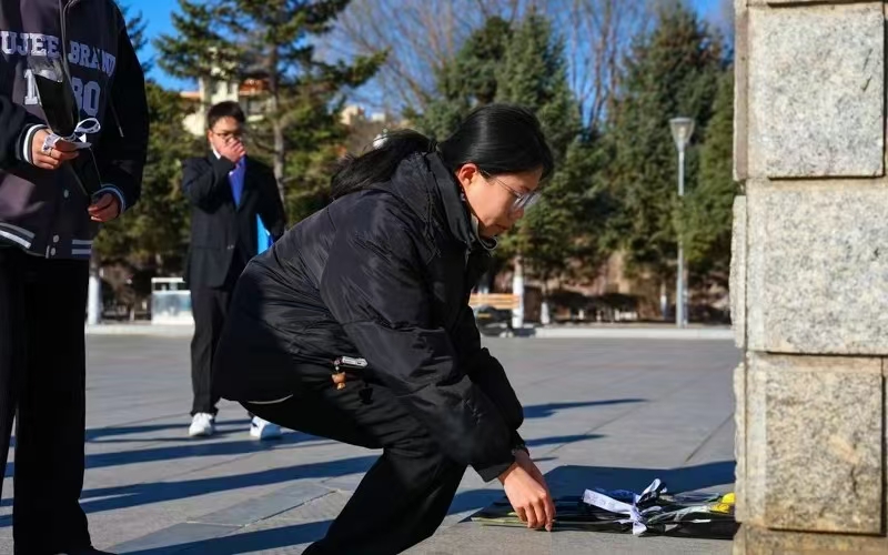 2025年3月29日上午,文学与新闻传播学院30余名学生代表在西拉木伦公园徐永清烈士塑像处开展“清明缅忠魂,赓续赤子心”清明祭扫活动。