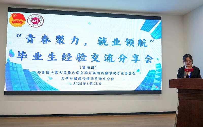 2025年4月24日晚,文学与新闻传播学院在图书馆内蒙古诗歌研究中心成功举办“青春聚力,就业领航”毕业生经验交流分享会(第四讲),共计100余名同学到场聆听。