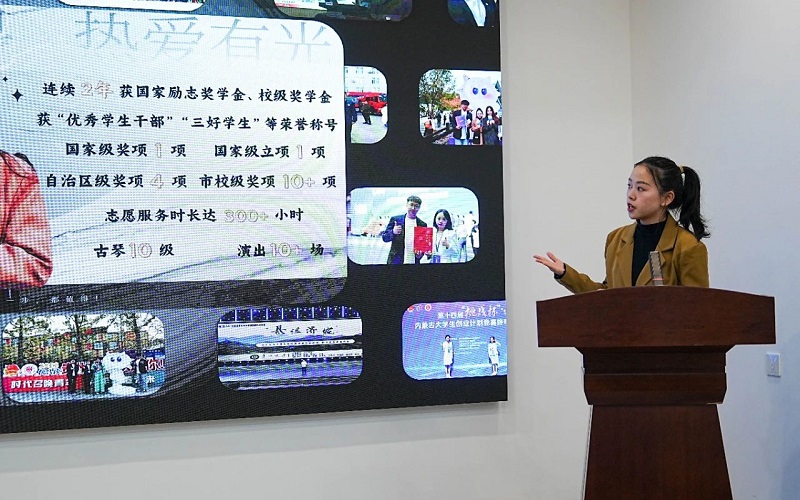 分享会上,2021级汉语国际教育班本科生、预备党员曾思宇作为创新创业优秀代表,以“竞赛项目如何实现从0到1的突破”为主题,结合参赛经历,围绕创业指南、经验分享、成长感悟三大主题进行了深入分享。她详细讲解了项目选题、团队协作、资源整合等关键环节,并鼓励同学们勇于尝试、敢于创新,在挑战中不断提升自我。活动尾声,曾思宇寄语学弟学妹们珍惜青春时光、勇敢追梦。