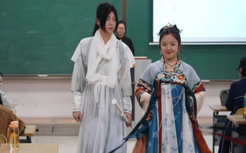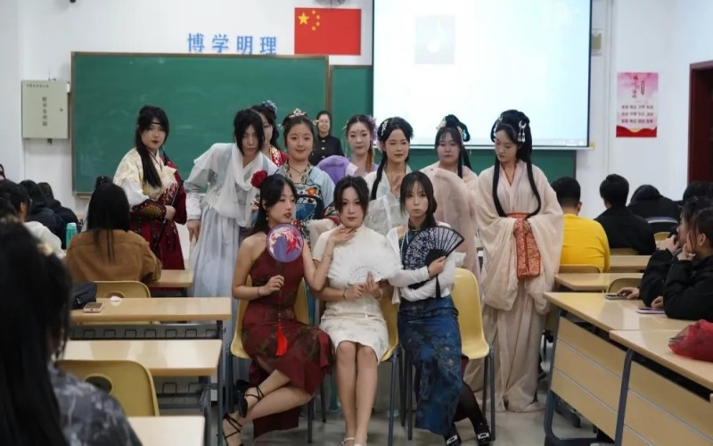 4月24日,非遗文化的魅力在实验楼303教室继续绽放。第二场活动以“传统服饰走秀”为主题,哈森其木格担任文化解说主讲人,剧本推理社社长昊堃担任主持人。活动创新采用“梦境叙事”手法,以非遗爱好者的第一视角,带领观众穿越“战国风韵”“魏晋风流”“大唐气象”“旗袍之美”四大历史场景。非遗协会与天一国学社成员身着历代华服,在声临其境配音社的背景音效与剧本推理社的情景互动下,将静态服饰展示与动态剧情演绎完美结合。从战国的深衣曲裾,到唐代的襦裙披帛,再到近代旗袍的典雅,生动讲述着不同时期女性服饰的古典之美。