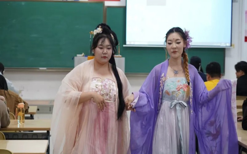 4月22日,在西拉木伦校区实验楼307教室,一场别开生面的非遗情景演绎活动拉开帷幕。活动由文学与新闻传播学院副教授哈森其木格担任学术指导,非遗协会副会长霍思图主持。来自非遗协会、剧本推理社、声临其境配音社及天一国学社的同学们,通过《秦风颂》《苍岐》《烟云南渡》三个篇章,以戏剧化表演结合多媒体手段,生动再现了先秦、汉唐及近代不同历史时期的女性形象。