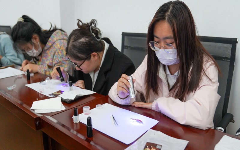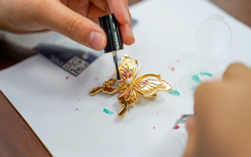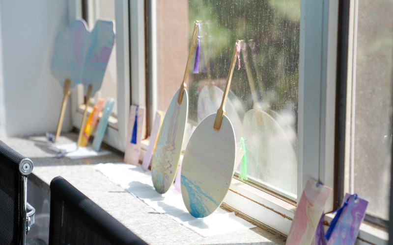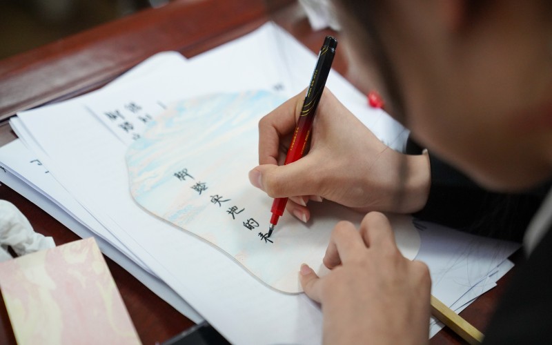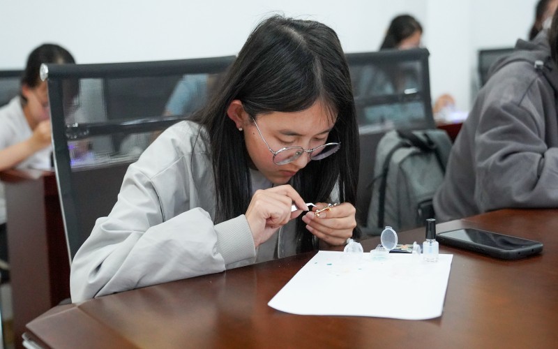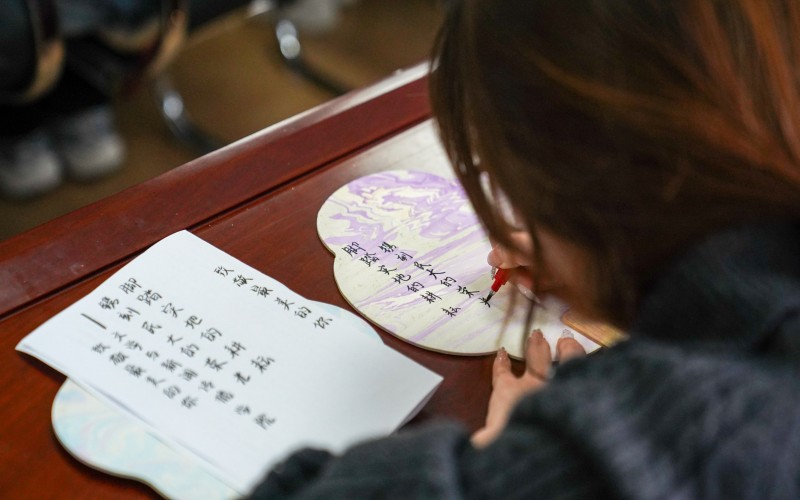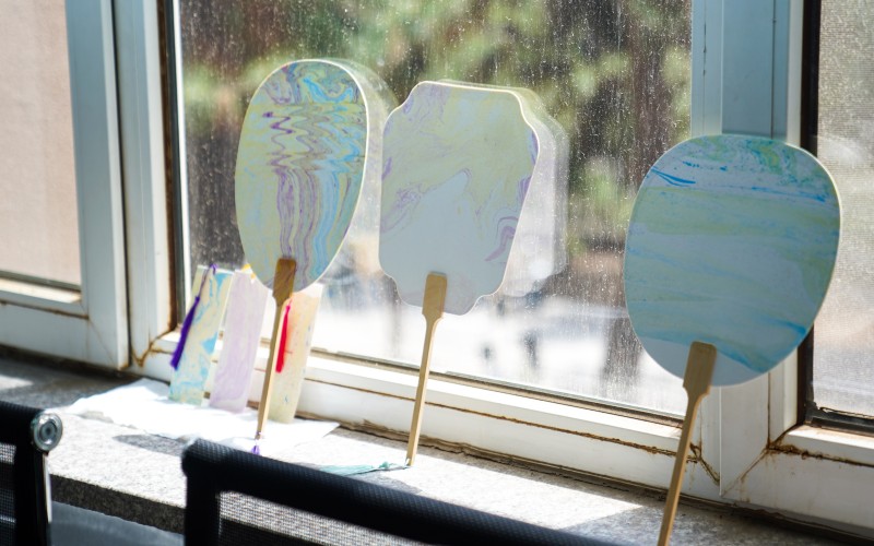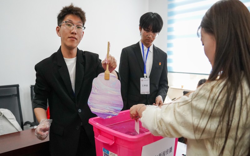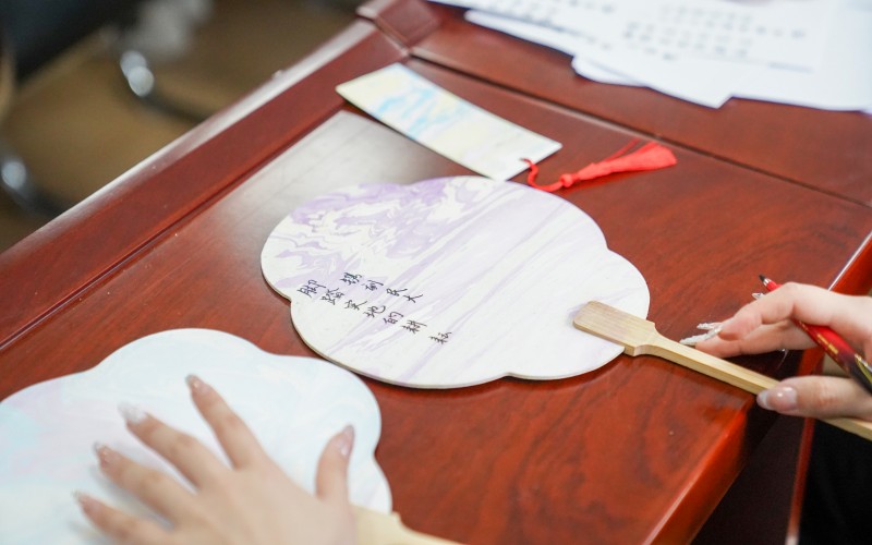 为迎接第135个“五一”国际劳动节,弘扬中华优秀传统文化与新时代劳动精神,4月29日中午,文学与新闻传播学院于霍林河校区思源楼204会议室举办“执扇绘钿·劳动创美”非遗手作沙龙活动。本次活动共40名同学参与。 活动中,工作人员详细介绍了漆扇与镙钿的制作步骤与技巧。参与制作漆扇的同学们通过调制漆液、水拓技法、扇面构图等实践,体验“漆色入水成画”的奇妙过程。漆液在水面流动晕染,最终拓印至素面团扇,形成独一无二的纹理。与此同时制作螺钿胸针的同学们通过挑选贝壳、设计纹样、镶嵌固定等工序,亲身体验“化朴为珍”的工艺智慧,制作的每一步都凝聚着匠心与巧思。这场手工沙龙活动不仅是一场非遗技艺的沉浸式体验,更是一堂生动的劳动教育课。通过亲手制作,大家都深刻地理解了“慢工出细活”的工匠精神,也感受到劳动创造价值的成就感。