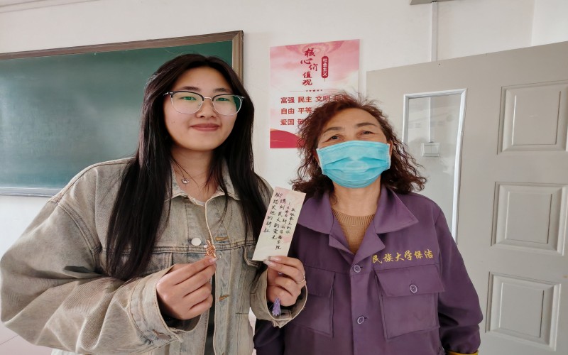 制作完毕后,同学们把作品赠送给一线教师、学工人员、宿舍管理员、食堂工作人员、清洁工人、快递员和安保工作人员等可敬的劳动者们。在赠送过程中,文传学子感悟到“劳动最美”的深刻内涵,表达了对劳动者的敬意与感谢。