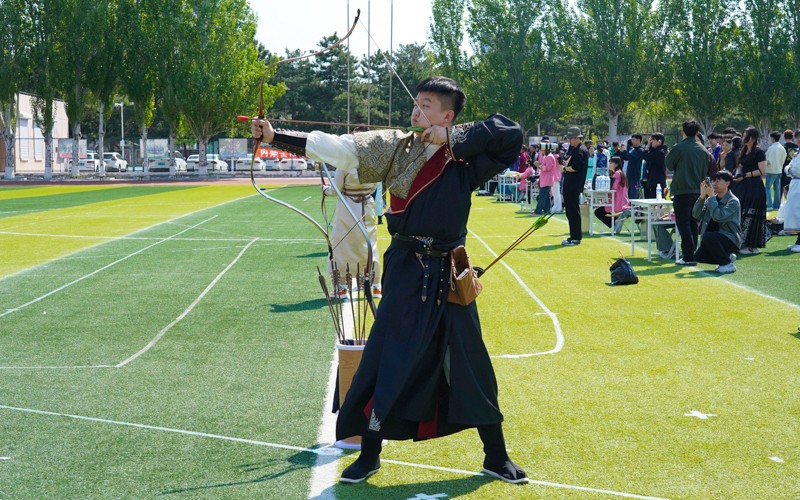 2025年5月11日上午,内蒙古民族大学首届传统射箭(哈日靶)比赛于霍林河校区操场盛大启幕。本次赛事汇聚了全校各学院代表队,其中,我院选派7名学子参赛。赛场上,他们凭借沉稳表现与昂扬斗志脱颖而出,荣获团体第六名的佳绩。