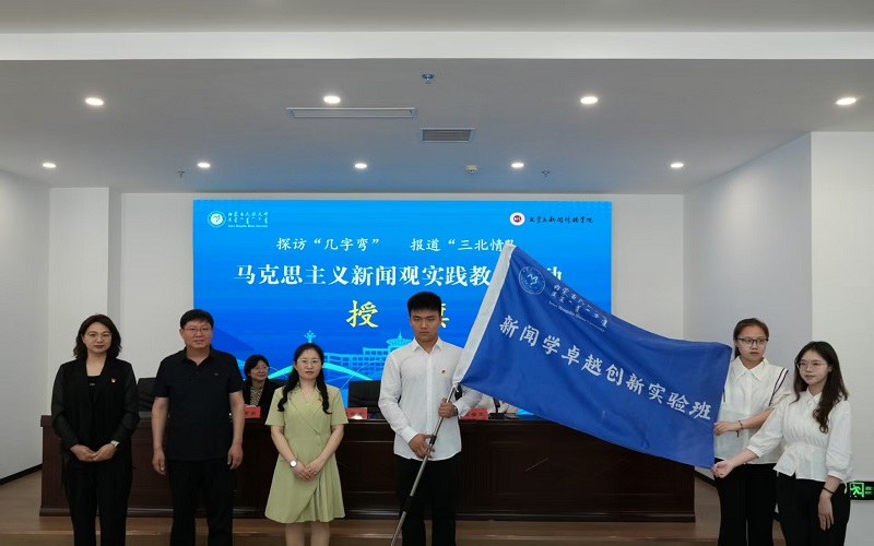 王世甫、孙艳艳一同为暑期即将举行的“探访‘几字弯’,报道‘三北情’”马克思主义新闻观实践教学活动授旗。据了解,本次马克思主义新闻观实践教学活动由内蒙古自治区高校马克思主义新闻观教育联盟发起,区内外10余所高校50余名师生参与,通过“国情调研+联合采访”的创新活动模式,旨在深化学生对习近平总书记重要论述的理解,提升专业实践能力,同时构建南北高校协同育人平台,促进教学资源共享与经验交流。