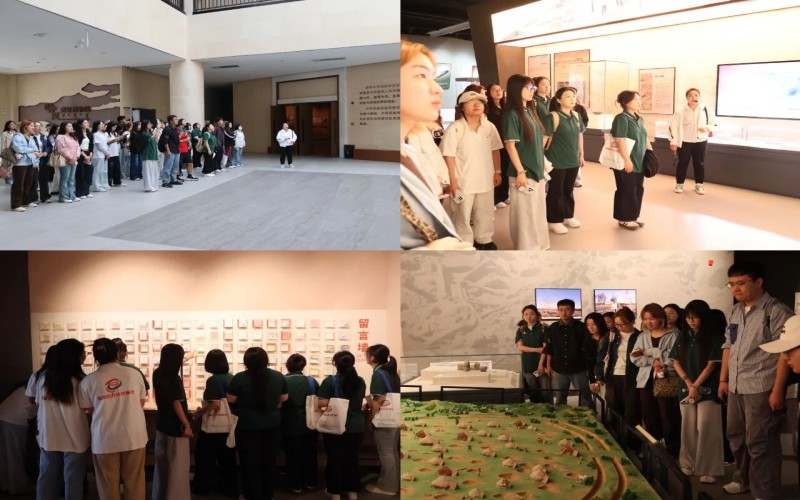 实践团首站抵达哈民史前考古遗址博物馆进行参观学习。在讲解员的引导下,师生们近距离观摩了新石器时代的房址、墓葬和陶器等珍贵文物,聆听文物背后的历史脉络,深刻感受科尔沁草原早期文明的深厚底蕴,理解这片土地上多民族交往交流交融的历史渊源。